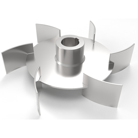 流動(dòng)狀態(tài):彎葉圓盤渦輪槳為徑流型槳葉。當(dāng)有擋板時(shí)可自槳葉為界形成上下兩個(gè)循環(huán)流。